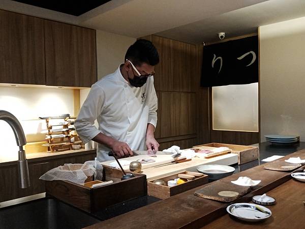位在安和路上的鰭処律,是間高檔無菜單日本料理,木頭材質的外觀裝潢,像是日式庭園的某一角,在熱鬧的安和路上,顯得格外低調。